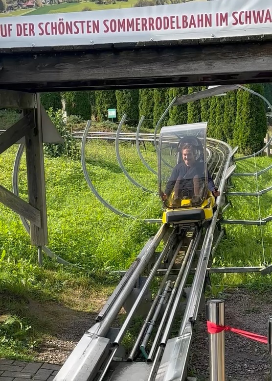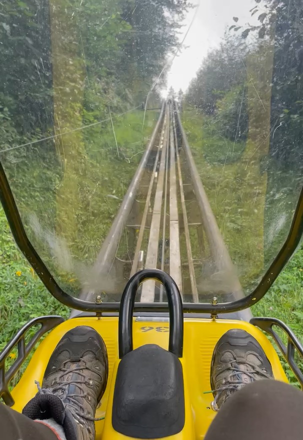 We got back to the car at 3pm and decided that there was plenty of time for more activities, so Ryan – being the large child that he is – suggested a “summer toboggan run”, a one-person rollercoaster where the rider controls the brake, in the nearby town of Gutach. The 20-minute drive took double that due to a missed turn and a winding road that climbed high into thick forest and snaked down into the next valley. I’m sure it was very scenic, but I was too busy navigating the hairpin bends to appreciate the glimpses of distant pine-covered ridges through the trees.