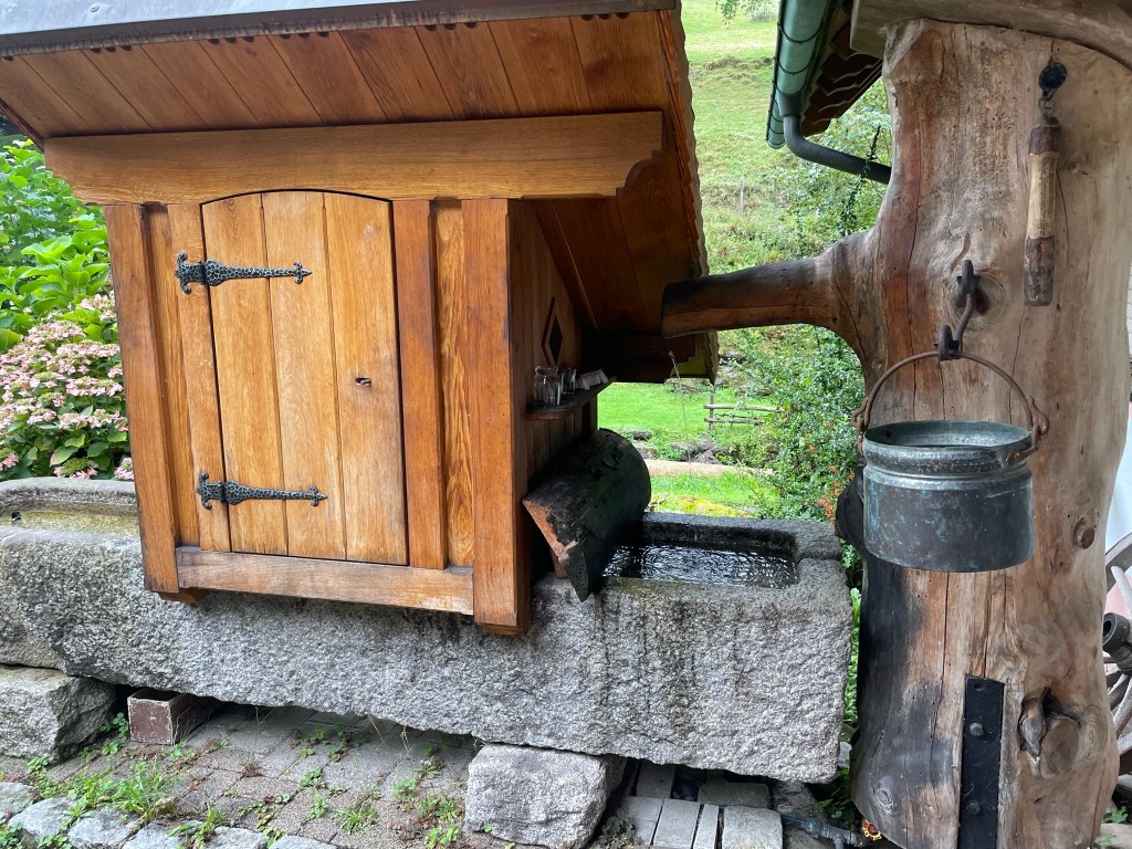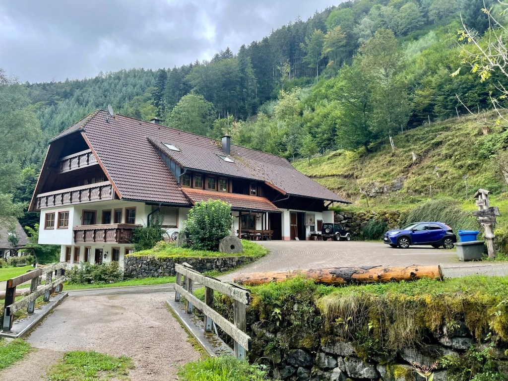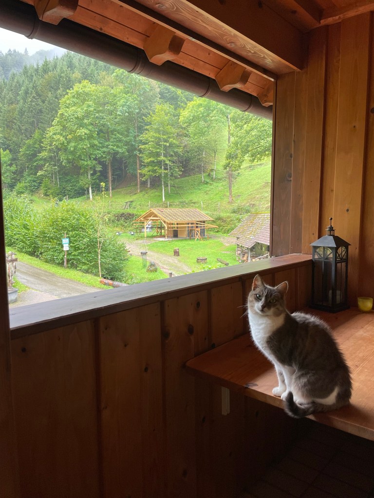 I got up and delighted on fully realising our location, which had not been revealed on our 9pm arrival in the dark. Our spacious apartment was on the first floor of a large, traditional Black Forest house on a small farm at the end of a dead-end road that climbed into a high-sided, dark-forested valley. The farm was timeless and fairytale-like, with its own watermill, wooden workshop and tiny chapel, and – as well as cosy wooden charm and a large living room-diner-kitchen, bedroom and bathroom – the apartment came with two bonuses that I hadn’t appreciated from my hasty peruse on AirBnB: an enclosed balcony looking up the valley, on which sat a large white and grey cat.