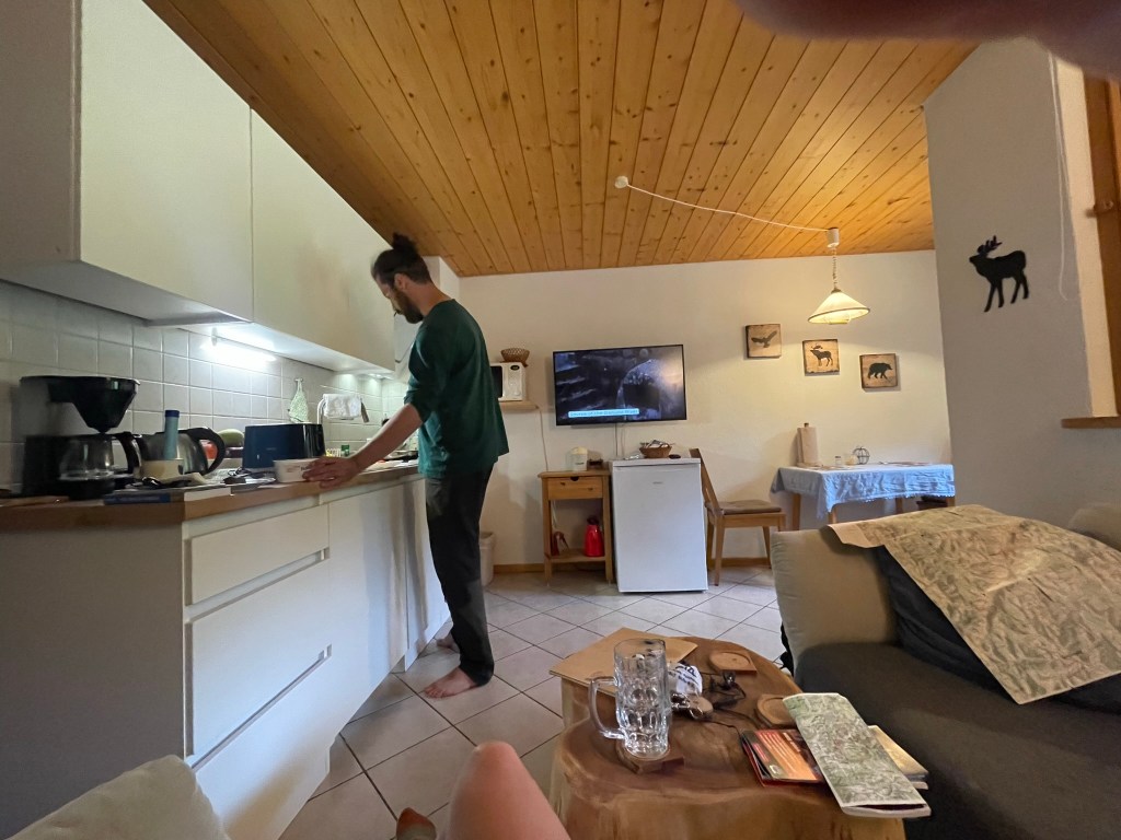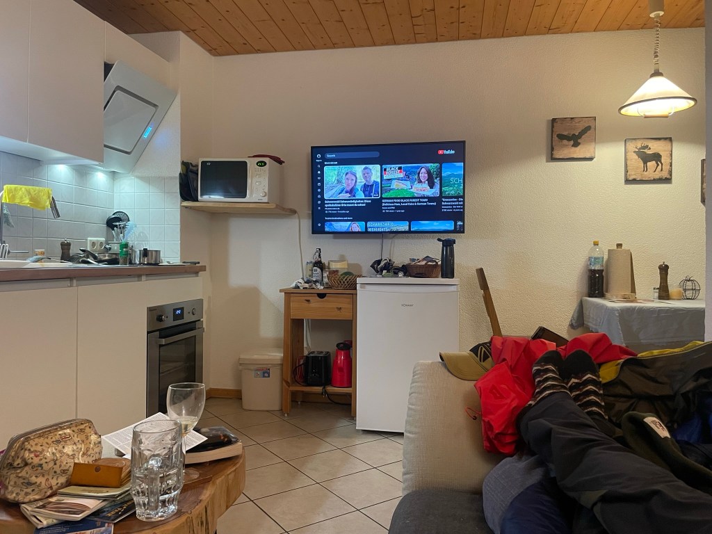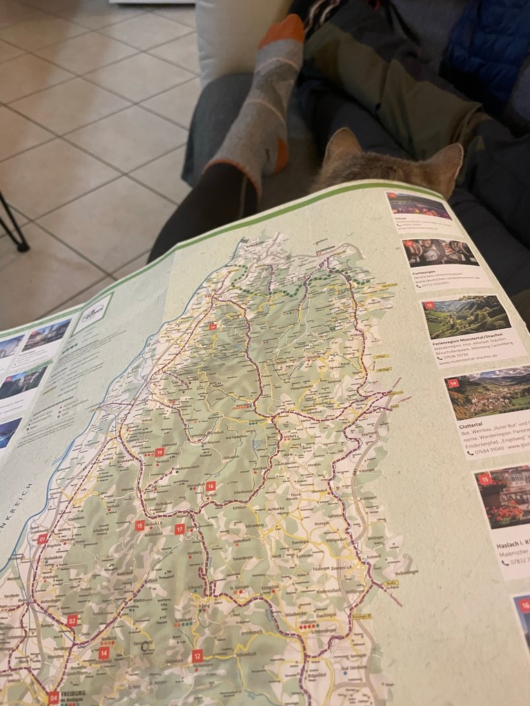 Ryan soon emerged and cooked a delicious breakfast of egg, tomato, rich German sausage (which may have been beef) and thin, seeded bread from a pre-cut loaf, which made lovely, crispy toast. Having done precisely zero holiday planning beyond a resolution to climb Feldberg, the region’s highest mountain, we scoured the numerous leaflets (all in German) and settled on a day exploring mainly by car, given the grey sky and forecast rain.