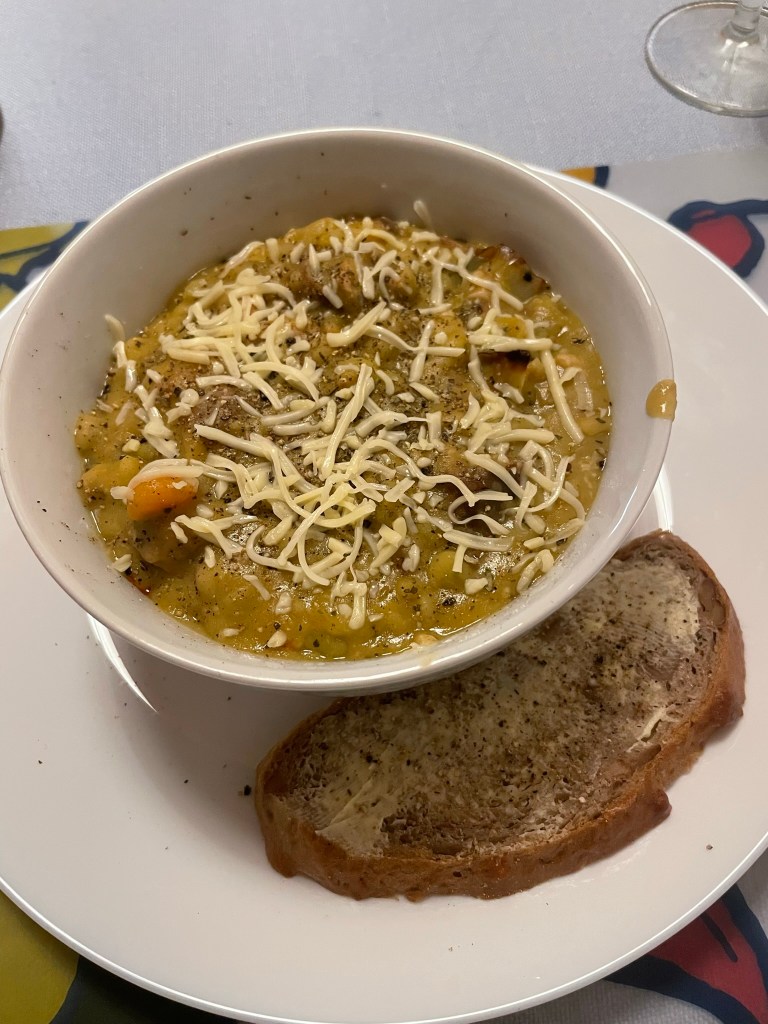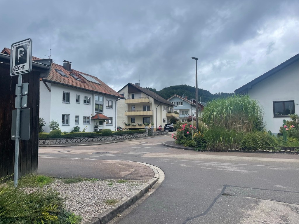 The hour-long drive back to Simonswald was thankfully uneventful, and took us through more pretty towns and fields nestled in wide valleys between great, sloping banks of rich forest. We arrived just before 7pm and settled in with a glass of wine (a German beer for Ryan) on the balcony, gazing up the green, wooded valley and listening to the sound of nothing but the birds and the stream. Kraut arrived, bit and scratched me when I was slow to give her some ham, and made herself comfortable on the sofa. Ryan cooked what turned out to be a thick pea and ham stew from a large Lidl can, which we had with cheese and walnut bread. We researched the area with the help of various leaflets (in German) and YouTube, which we could access on the TV, and decided – in light of the wet forecast – to go to the weekly market at Waldkirch the following morning. It was a lovely end to a successful first day. We went to bed besotted with the Black Forest.