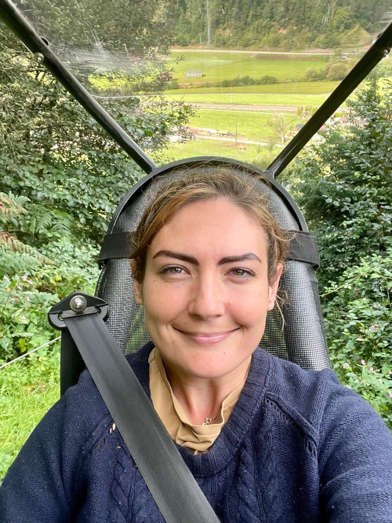 We paid 4€ each at a little wooden kiosk, timed our turn so that we wouldn’t get stuck behind any children, and followed the instructions of the operator as well as we could – fünfundzwanzig meter, which I took to mean stay 25m behind Ryan. The carts were low and exposed, like glorified dinner trays with a windscreen, open sides and a handbrake on a raised metal track. I chugged joltily up the steep side of the valley at a snail’s pace with a bolt jabbing into my back at every track joint. It levelled out at the top and I had a brief moment to gaze over the valley. The red rooves of Gutach huddled between fields that climbed into dark-forested ridges, now drenched in soft afternoon sun. Then the fun bit began.