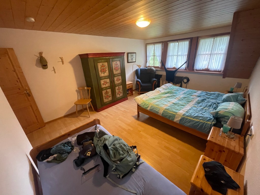 I felt as if I’d woken up in a dream. I lay under a pine-clad ceiling in a large room furnished plainly with a double and single bed, a floral-painted wardrobe and a comfy-looking armchair in a corner by three net-curtained windows, which revealed a steep, forested bank rising high above the back of the house in the misty morning light. After a hectic time planning this very-last-minute trip, it finally sank in that we’d made it past the travel hurdles I’d needlessly fussed about and were now deep in Germany’s Black Forest.
