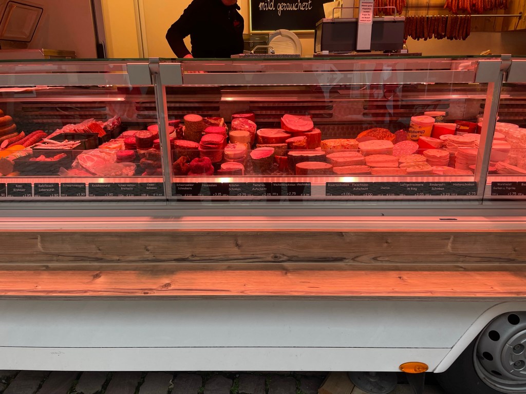 I wandered over to see an ostrich and was warned off getting too close by Sean, who explained that they’re powerful, spiteful animals that peck things for no good reason beyond being able to reach them. This was evidenced by a half-gouged tabletop, accessible to their beaks – which were slightly downturned at the corners, giving them a look of constant irritation – by virtue of long legs and necks. I eyed the bird warily and went off to stroke Noodle, who was much more accommodating.