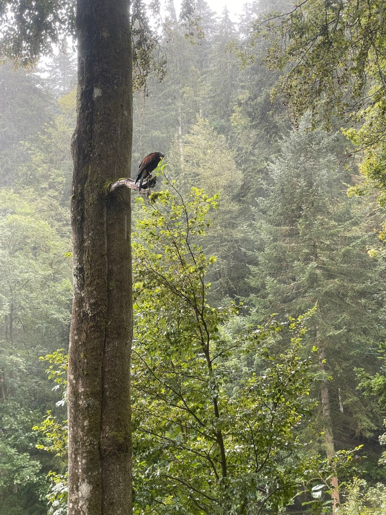 After tea we were led behind the building to a wooded area. A deep purr betrayed the next part of the tour before we arrived at the enclosure. It was a thrilling, chilling sound that I felt as much as heard – a resonating, bass rumble that penetrated the air as if it were surrounding us. Two female lions – Savannah and Lucy – greeted us expectantly, purring and prowling along a high wire fence just a few feet away, lean muscles rippling through their sand-coloured coats as they observed us with a cool, black-rimmed, golden gaze. The guide threw them a couple of slabs of horse meat, which they plucked up before withdrawing into the trees. It was the closest I’d seen lions and I was struck by their size and composure – they were equal parts graceful and powerful, and they made me feel quite puny.