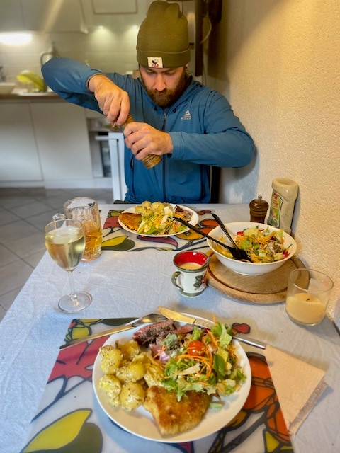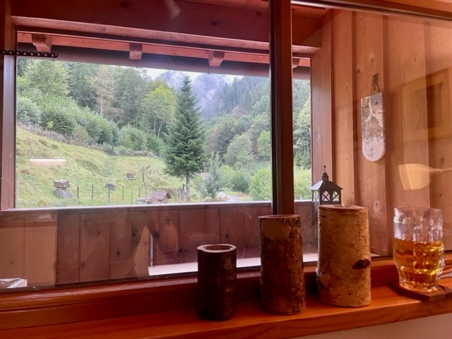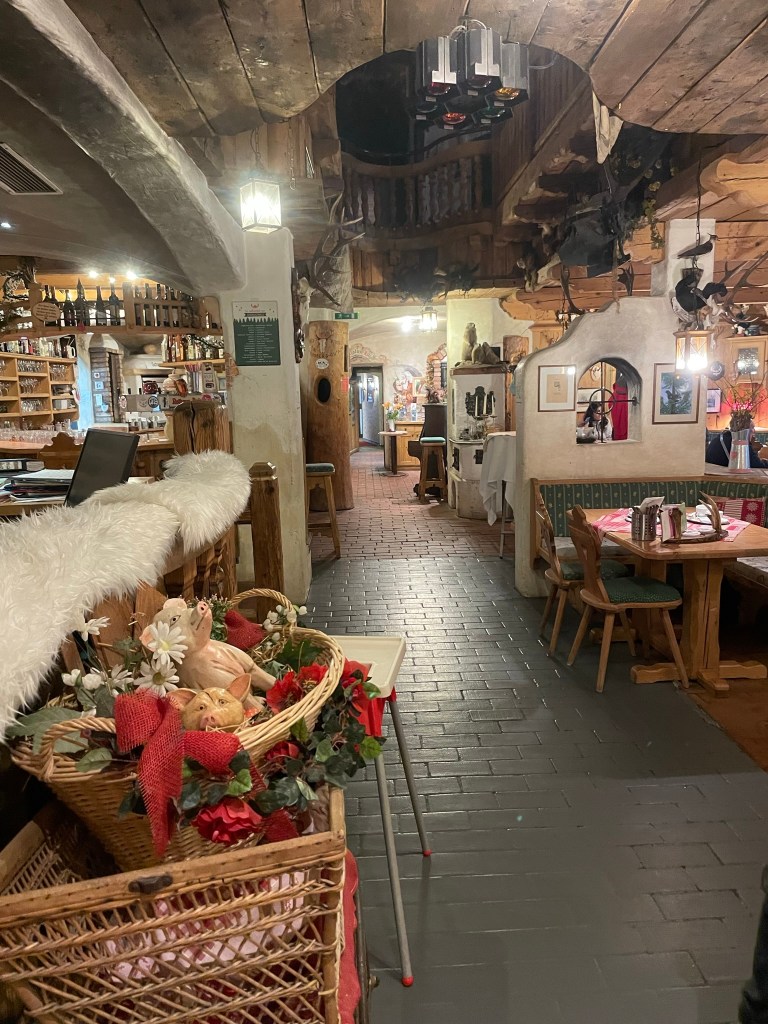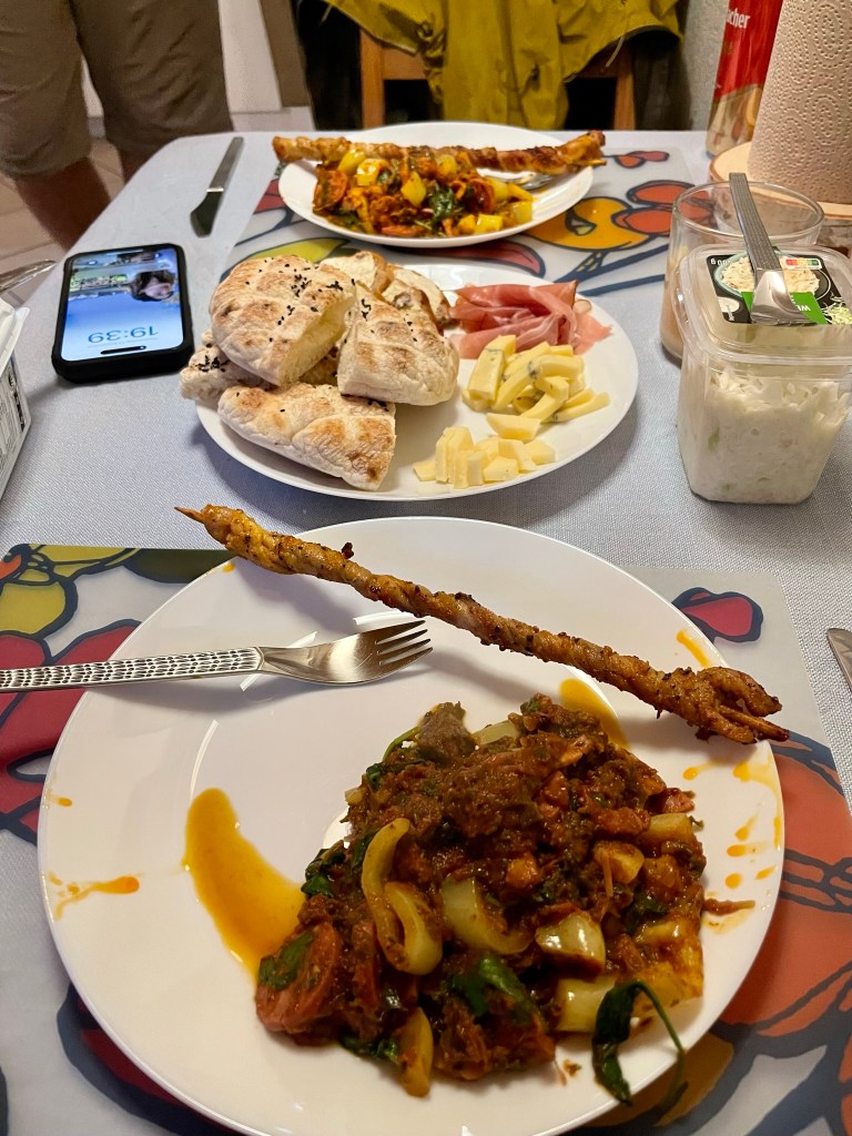 We made our way back to the big, central building, which was a relief as a throng of midges had descended on us as we watched the hyenas. We sat on a long table by an outdoor bar and made the most of that installation – I enjoyed a sparkling rose and discovered a love for baileys-like amarula in quite close succession. It was surreal to sit and relax so close to the herd of herbivores, which had been joined by a few ostriches, separated from us only by a boundary made of logs.
