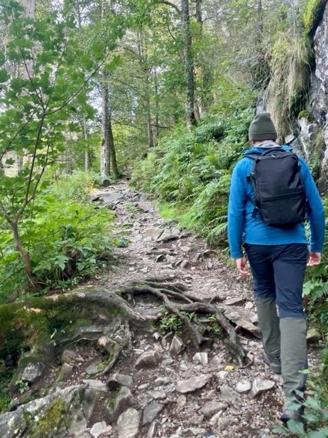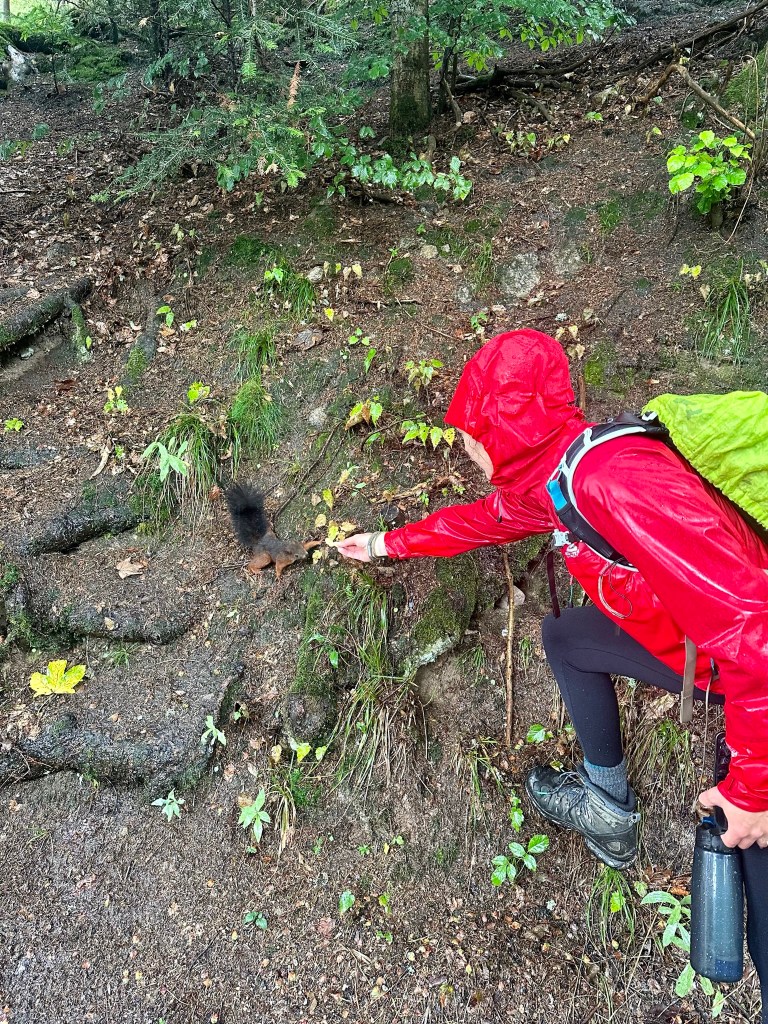 She was shown around the group at a distance, as pangolins are susceptible to human diseases, then released for a wander. She unballed herself and pottered along the ground on her two hind legs, leaning forward with her curved, blunt-clawed “hands” crossed in front of her, her long, heavy tail acting as a counter-weight. She was bigger than I’d expected, very cute, very slow, and – apart from her scales – heartbreakingly defenceless. We all fell in love with her immediately.